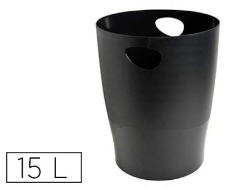Papelera plastico exacompta ecoblack negro 15 litros. Papelera fabricada en polipropileno reciclado. Con asas integradas. Capacidad: 15 litros. Medidas: ø 26,3 x 33,5 cm.