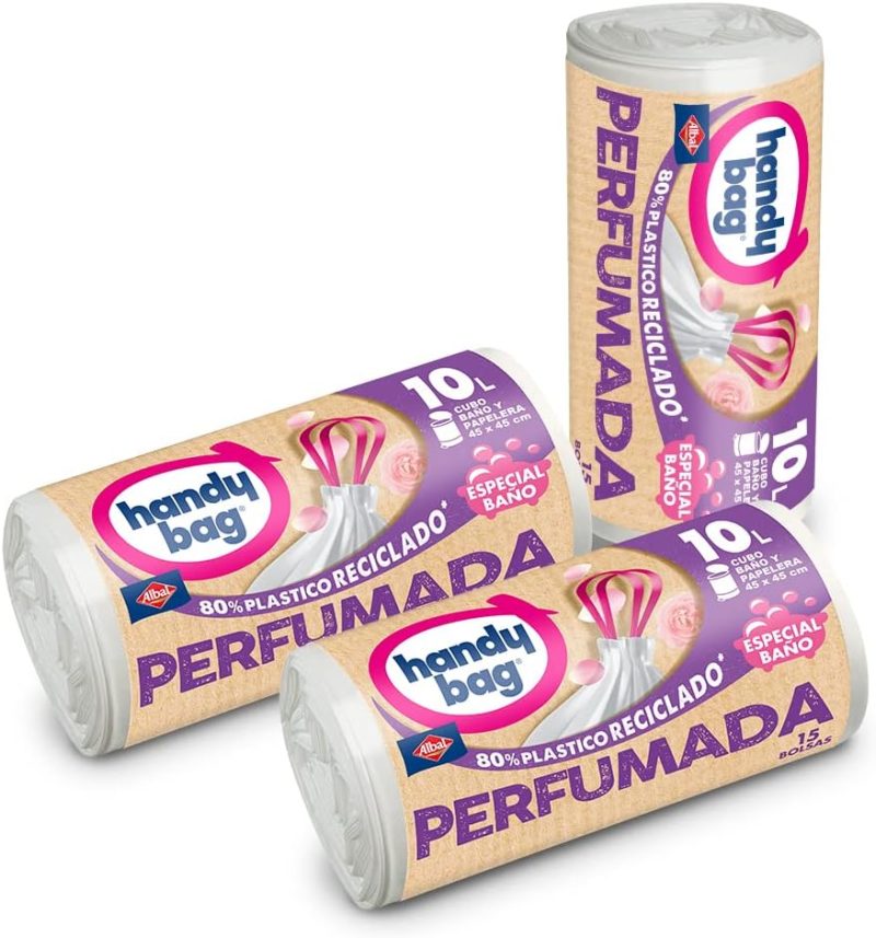 Bolsas de Basura 10L Baño, Perfumadas, Extra Resistentes, 80% Materiales Reciclados, 45 Bolsas