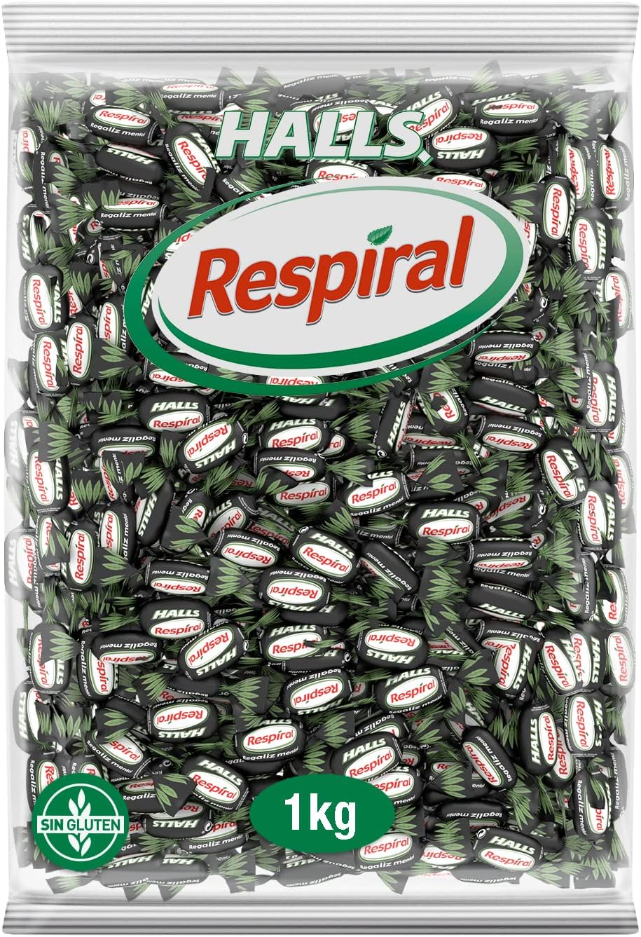 Halls Respiral caramelos duros refrescantes sabor a regaliz y mentol sin gluten. Paquete de tamaño grande 1kg con caramelos individuales de forma redondeada ideales para llevar contigo a cualquier parte y refrescar tu rutina.