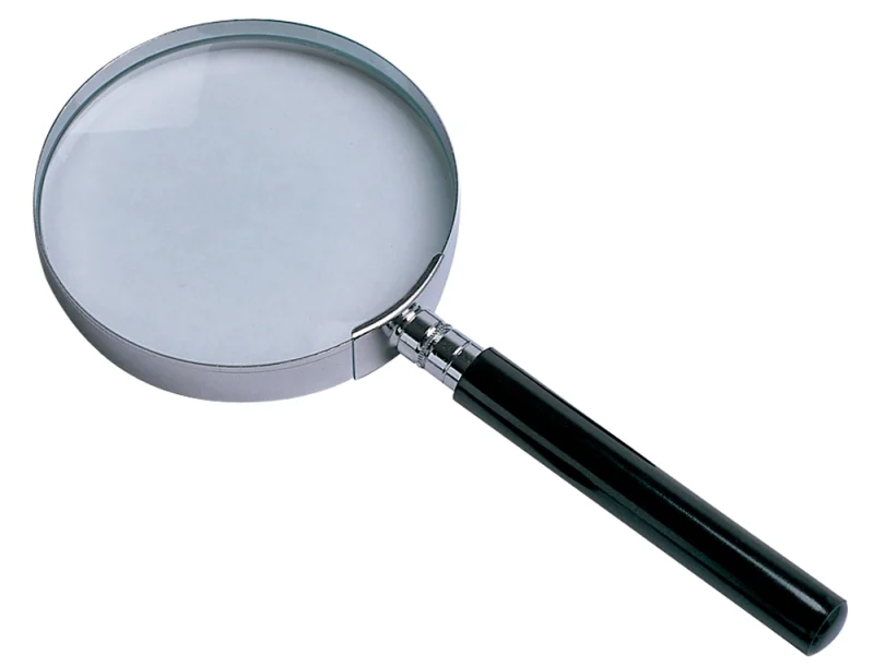 Lupa Cristal Aro Metalico Mango Plastico Negro 90 mm.